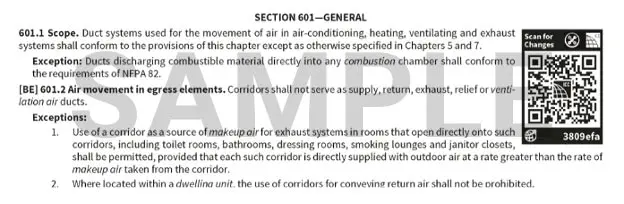 Practically, the style changes include streamlined lists, consistent grouping of associated content, shading for table headers and notes, single-column text, and modernized font styles. For displaying code changes, ICC moved away from marginal markings and will now use QR codes.