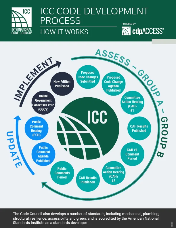 International Code Council. (2022, December 07). CP#28-05 โ Code Development. Retrieved from https://www.iccsafe.org/wp-content/uploads/CP-28-05-Code-Development-Procedure-12072022-NEW-FORMAT.pdf